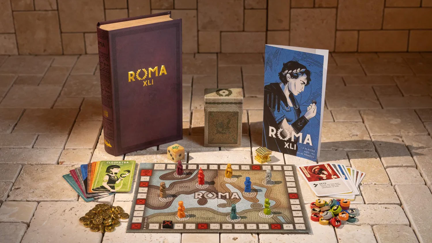 ROMA XLI is a strategy and social deduction board game published by Facade Games. It is the fifth instalment of the Dark Cities Series, alongside successful titles like Salem 1692, Bristol 1350, and Hollywood 1947.